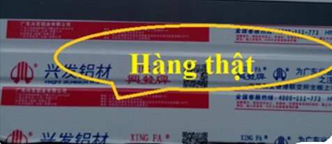 Nhìn bằng mắt thường, bạn có thể dễ dàng nhận biết được tem nào là tem thật, tem nào là tem giả. Loại nhôm Xingfa Quảng đông thật thường có chữ in đỏ tươi, rõ nét, mã vạch in đậm, nhìn có cảm giác tự nhiên.