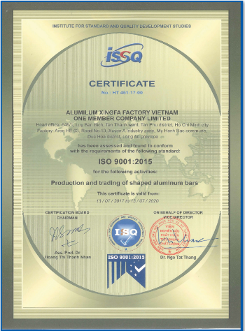Chứng nhận chất lượng sản phẩm nhôm Xingfa Việt Nam